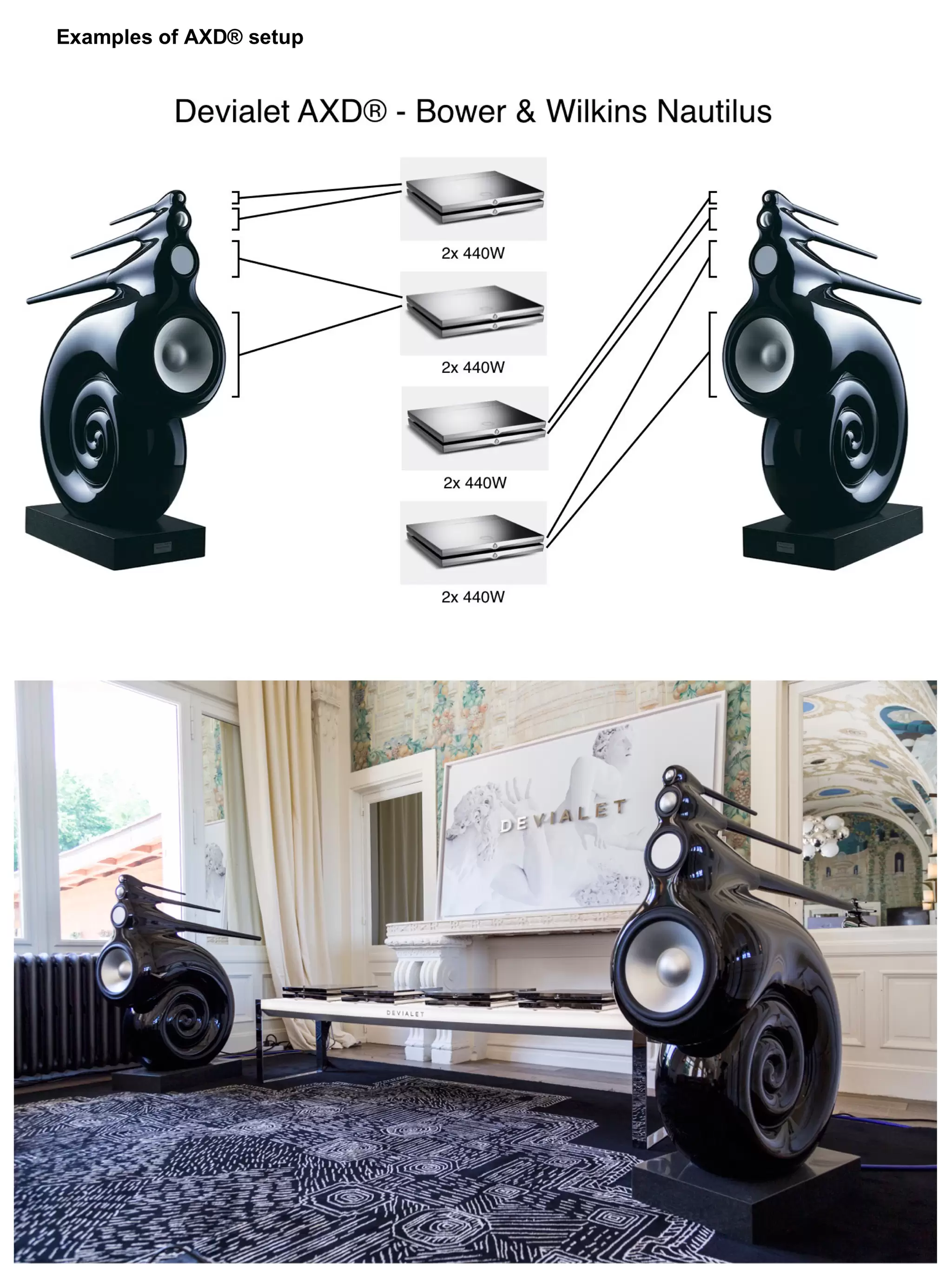 AXD® (Active X-over Design) combines the endless possibilities of Devialet Expert Pro DSP to the knowledge of the crossover networks of some carefully selected high-end speakers, to create a complete, perfectly optimized setup. AXD® is the only technology capable of getting the best from these extreme audio systems and deliver sound in its purest form.