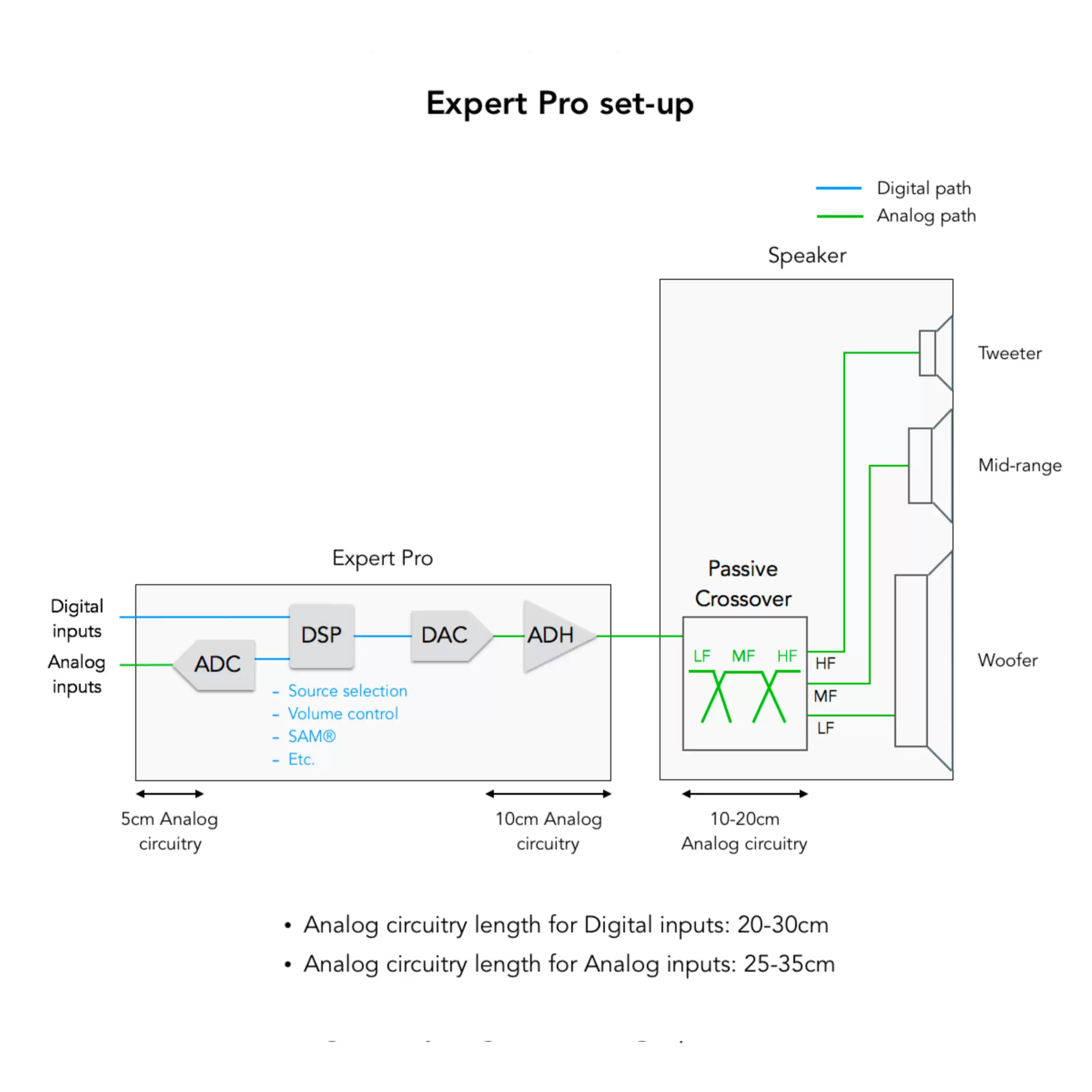 In Expert Pro systems, the analog path has been reduced to the minimum, achieving a huge improvement in sound quality associated with signal processing capabilities such as our exclusive SAM® technology: