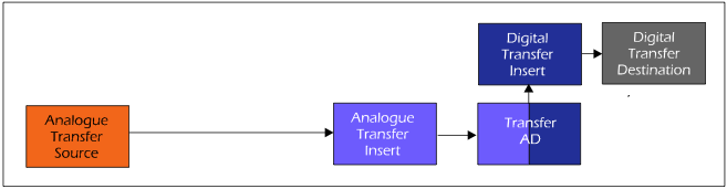 If you starts from an analogue source (such as open reel), and add one analogue processor and one digital processor, Crookwood will automatically insert the transfer AD (ADC) after the analogue processor, before sending digital signal for the digital insert.