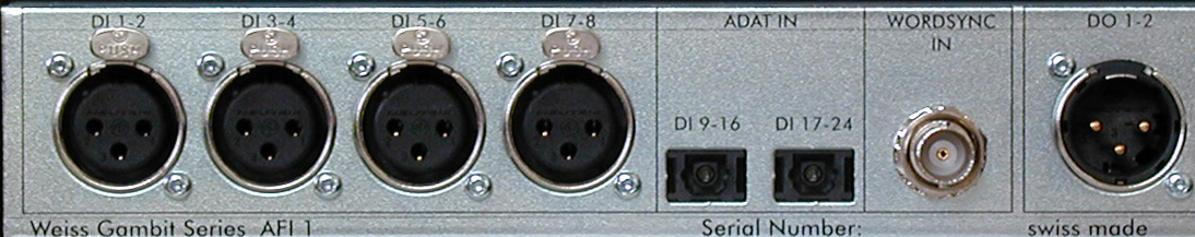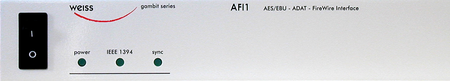 The AFI1 is a 24 channel Firewire Interface with 8 channels of bidirectional AES/EBU interfaces and 16 channels of bidirectional ADAT interfaces.