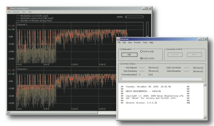 I tested up-sample ripped CD files using Weiss own professional computer program SARACON. It is the best quality sample rate conversion available in the market. How good? The THD+N is better than –180dB for 32 Bit fixed point I/O, unweighted. Audiophile can test with different up-sampling results and match with their own preferences. DAC2/Minerva supports all sampling rate from 44.1kHz to 192kHz. This can be a good upgrade for computer audio as source user. SARACON represents the best SRC you can find, has much higher value than audiophile cables.