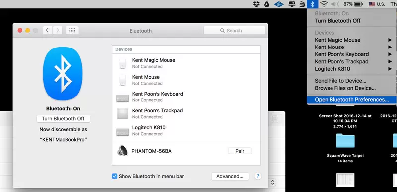 那麽可以用另外一個播放方式是藍芽無線。在電腦右上方有Bluetooth 藍芽。