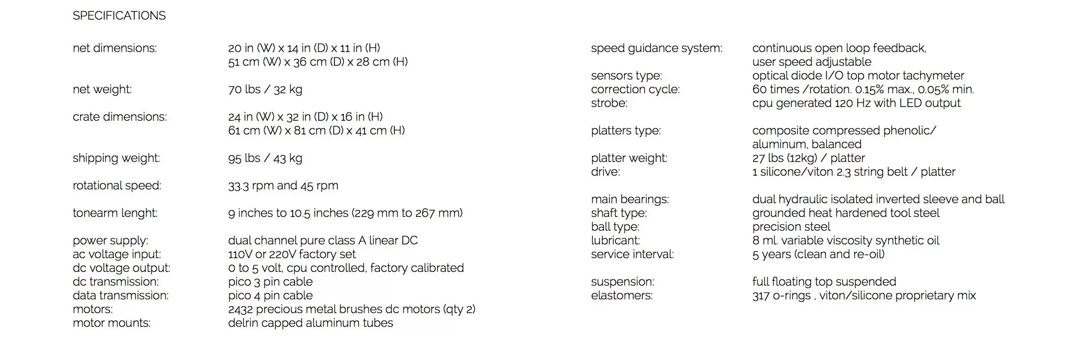 獨立的電源供應遠離轉盤,被電供影響的機會減至最低。 附設一個極穩重的金屬碟壓。