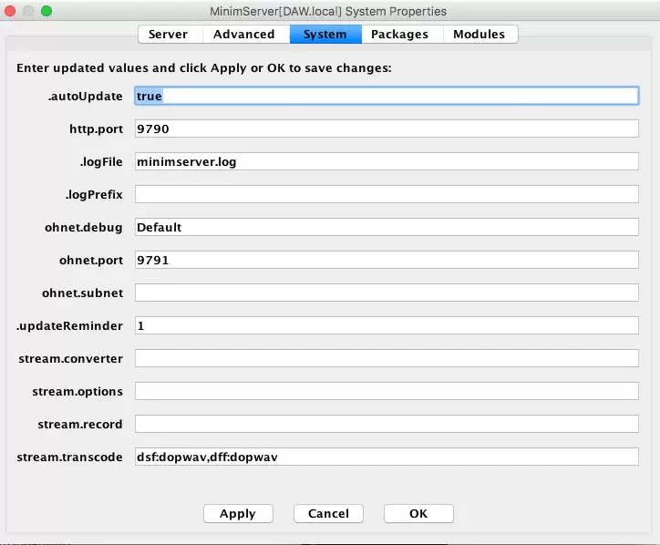 Under MinimServer -> Packages you install available package minimstreamer-0.6.4 (install automatically, just a click). This allows you to set under System the following important line. (Bottom screenshot)