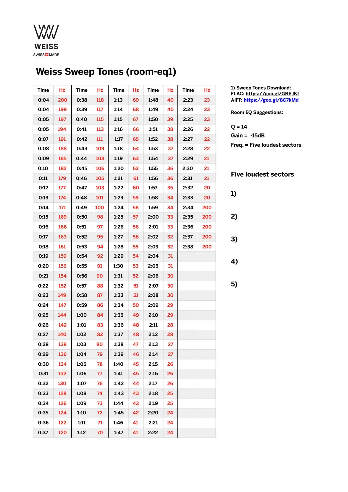 Weiss Switzerland headquarter has created a very interesting tool that not only target Weiss DAC50x customers, but anyone who has an audio system can do the same thing. It uses you, the listener ears and the sitting position to detect the room mode. There is a PDF documentif you would like to download and follow.