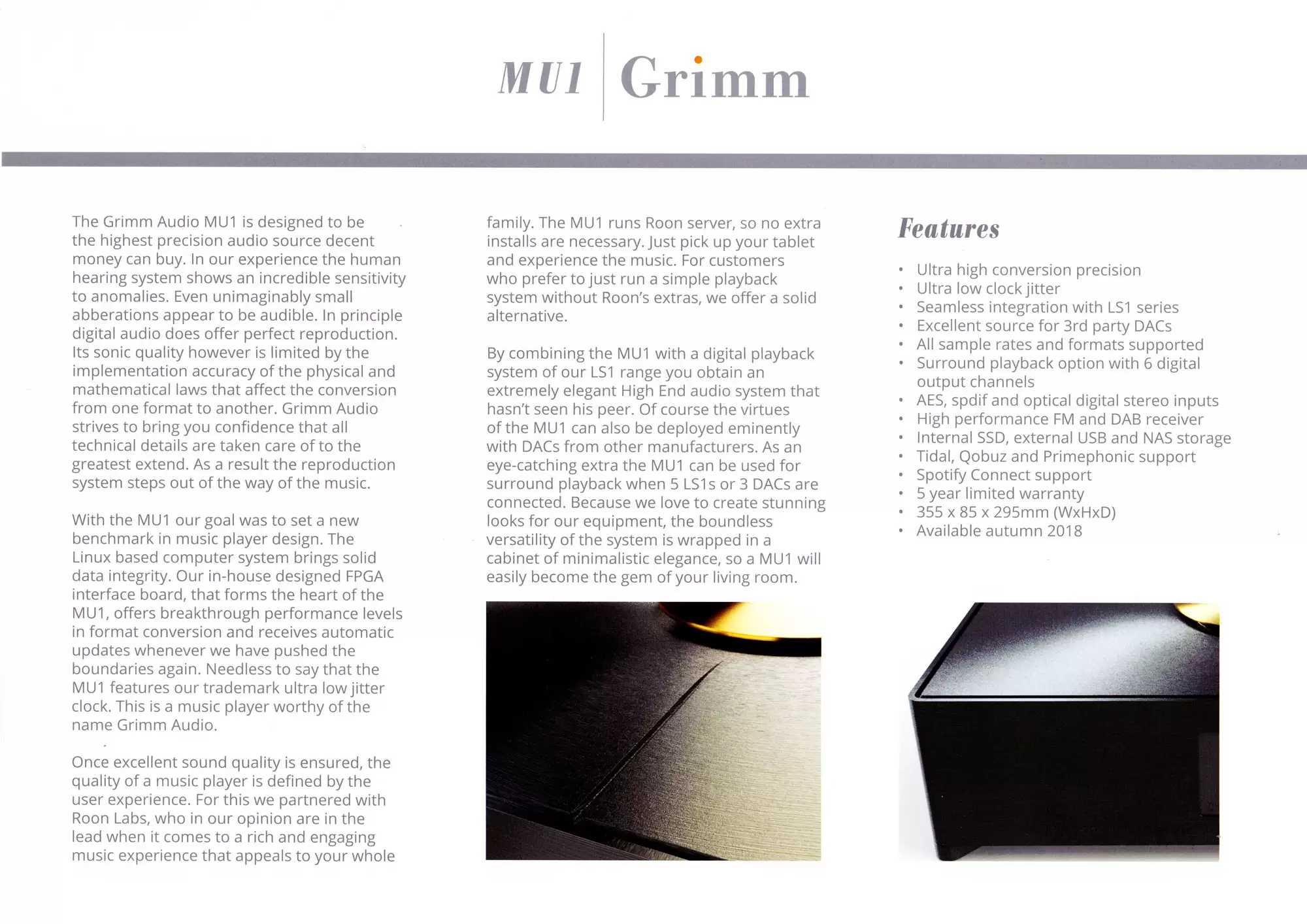 Grimm Audio MU1 is a new music server that just launched during Munich High End Show and Hong Kong AV Show. The final product is target to be deliver by end of 2018. Here is the preview information about MU1. Â Few exquisite features are included that you never see it before. It is a music server that you should waiting for.