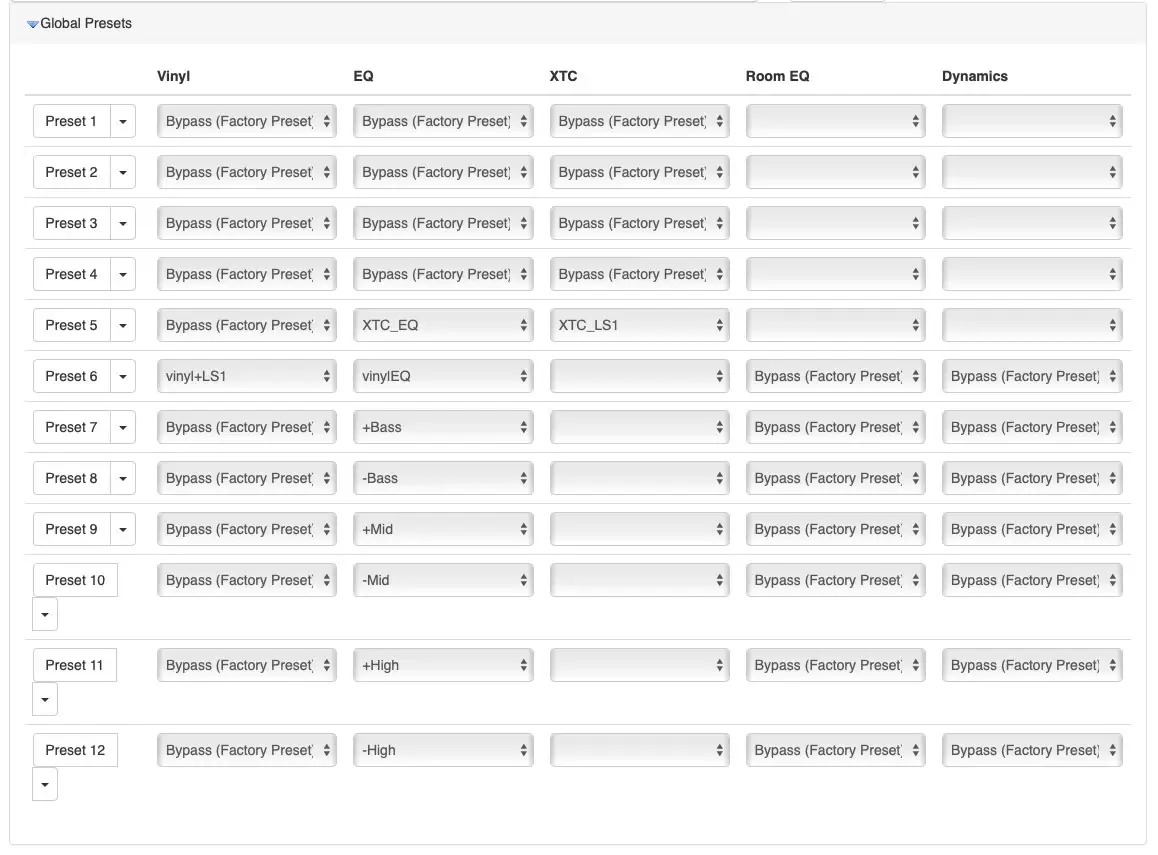 - I use Preset 7 to Preset 12. And I leave Preset 1 as passthrough (No DSP)