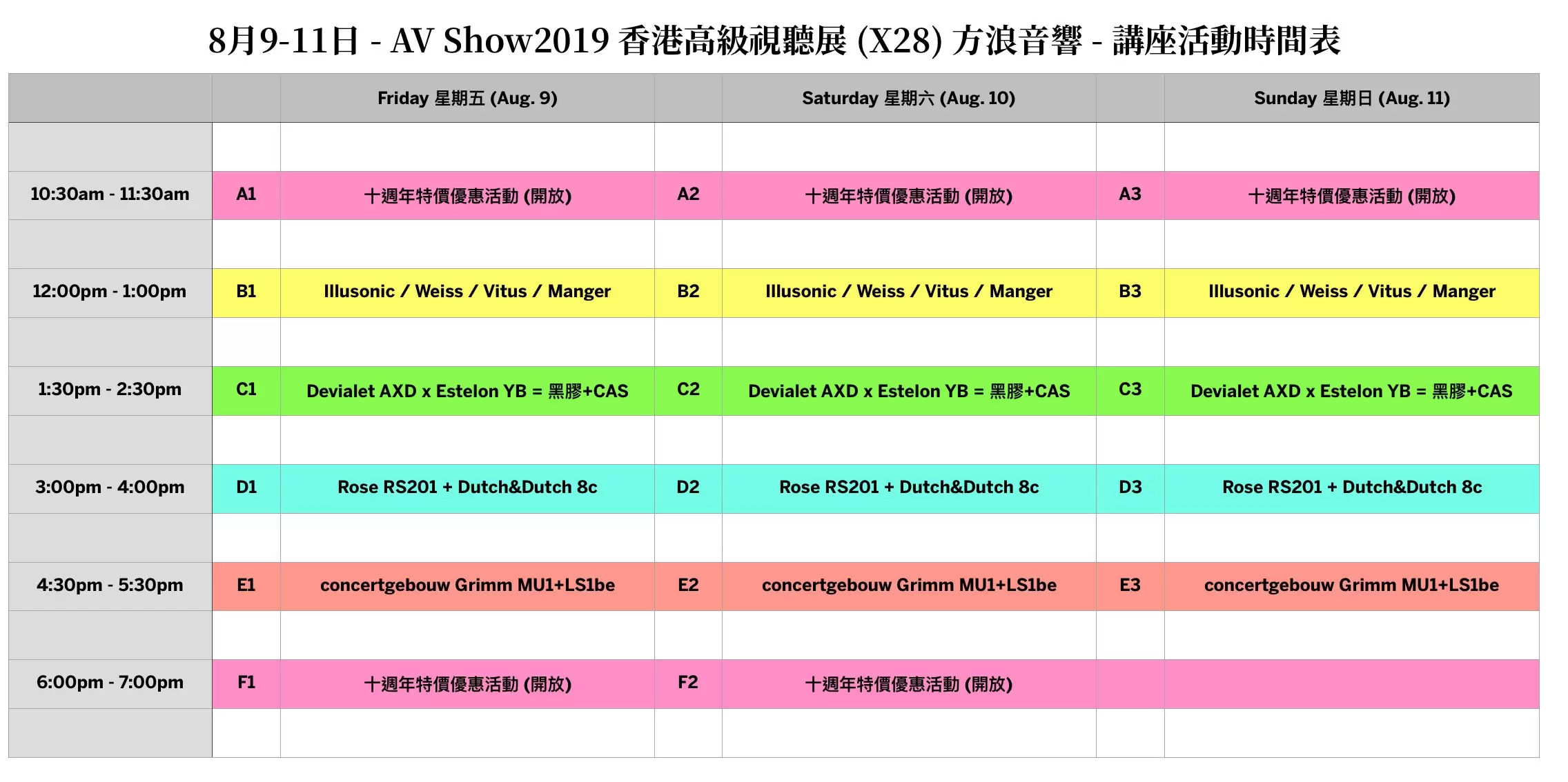 十週年特價優惠活動 – A1 / A2 / A3 + F1 / F2 / F3