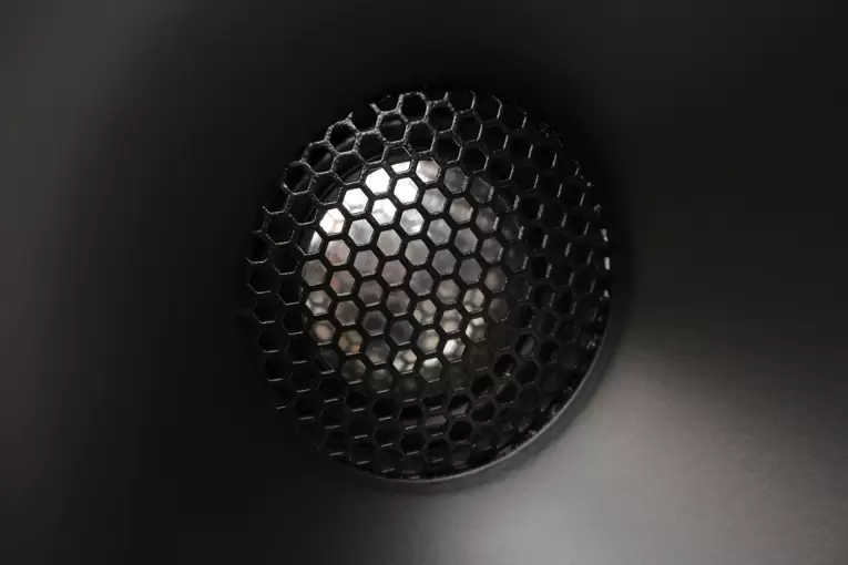 Above 100Hz, the frequency at which the subwoofers hand off to the midrange driver via a crossover with fourth-order Linkwitz-Riley slopes, the 8c radiates as a cardioid in a manner analogous to how a cardioid microphone works and unlike how most speakers work. In conventional speakers, the soundwaves radiated from the back of the driver diaphragm are a problem that must be dealt with. The designer may try to dissipate these unwanted frequencies as delayed resonances through the enclosure panels. To achieve this, they may increase the panels’ mass, damping, and/or stiffness, and use damping material inside the enclosure to convert these resonances into heat. In the 8c, the out-of-phase sound from the rear of the midrange diaphragm is filtered and delayed within the acoustic cardioid subenclosure before exiting the cabinet through a long vertical slot on each side panel. The sound radiated from the front of the driver and the out-of-phase sound emitted through the slots meet each other toward the rear of the enclosure, where they cancel each other out. Unlike the subwoofers’ output, which is reinforced by the wall behind the speaker, the midrange frequencies that would otherwise be headed rearward are mostly canceled out — acoustically speaking, the wall isn’t there at all (cardioid pattern), which effectively eliminates unwanted midrange front-wall reflections. According to Mensink, the 8c’s radiation patterns — hemispherical for the subwoofers, cardioid for the midrange — are very close in directivity and blend seamlessly, enabling the 8c to work well in most rooms.