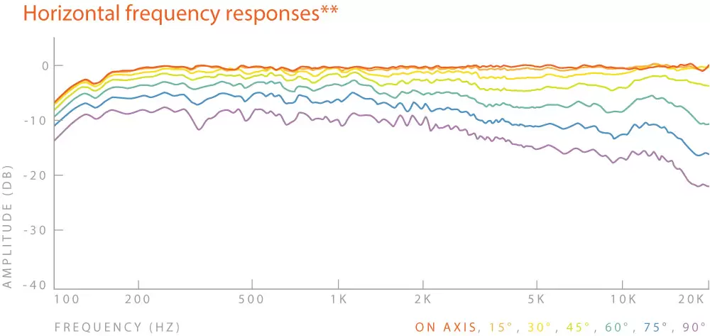 For technical descriptions of the drive-units, I relied mostly on Mensink’s enthusiastic explanations. He told me that each driver is truly pistonic within its passband, meaning that there are no breakup modes within the bandwidth of frequencies assigned to each to reproduce. The bass is handled by two high-excursion subwoofers mounted on the rear of the cabinet’s sealed enclosure and driven by a 500W class-D amplifier. These woofers are designed to work with the room’s front wall, which, ideally, would be between 8” and 32”from the rear panel. Basic bass tuning is accomplished internally with DSP using the distances of the speakers from the side and front walls, entered by the user in the app. Because the wall is geometrically close to the speaker in terms of wavelength, and because bass frequencies radiate omnidirectionally, the wall functions as a sounding board for the bass, the outputs of subwoofers and wall combining to become one in a hemispherical radiation pattern directed at the listener. According to Mensink, this use of the front wall provides two important benefits: a 6dB boost in sound pressure compared to a freestanding speaker, and improved dynamics and punch (i.e., tighter bass) due to the resulting phase-coherent low-frequency wavefront.