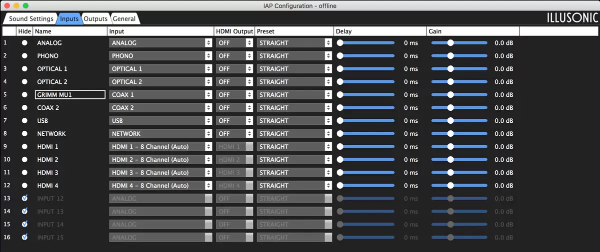 5) Sound Setting (Default) / Inputs / Outputs / General