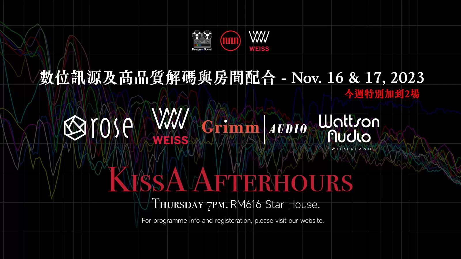 Kissa AfterHours已經漸漸開始成為圈內音響活動的Best Kept Secret!這些時光都是非常愉快。上週還有全港最新的獨家高清母帶及格式比較示範。參加過的朋友都增加了解不少音響世界的祕密!這些音響知識都不方便公開,所以只會以Bar Louge輕鬆型式,展示最新產品以及音響世界的不同元素。唔係淨係講音響器材,仲可以討論唱片製作,音響科技,音響歷史故事以及你想知道的音響問題或題目,我們都盡力回答及交流。無論閣下是音樂或音響發燒友,音響同行,甚至專家們我們都希望由這個AfterHours系列,跟同好互動吓, 搵吓音響聆聽的愉快。 當然我們還會準備好音樂播放,飲料及食品。 同事們可以一邊輕鬆吓Happy Hour (加班),另一邊增加音響知識與樂趣。 歡迎註冊參與。 星期四/ 星期五晚見!