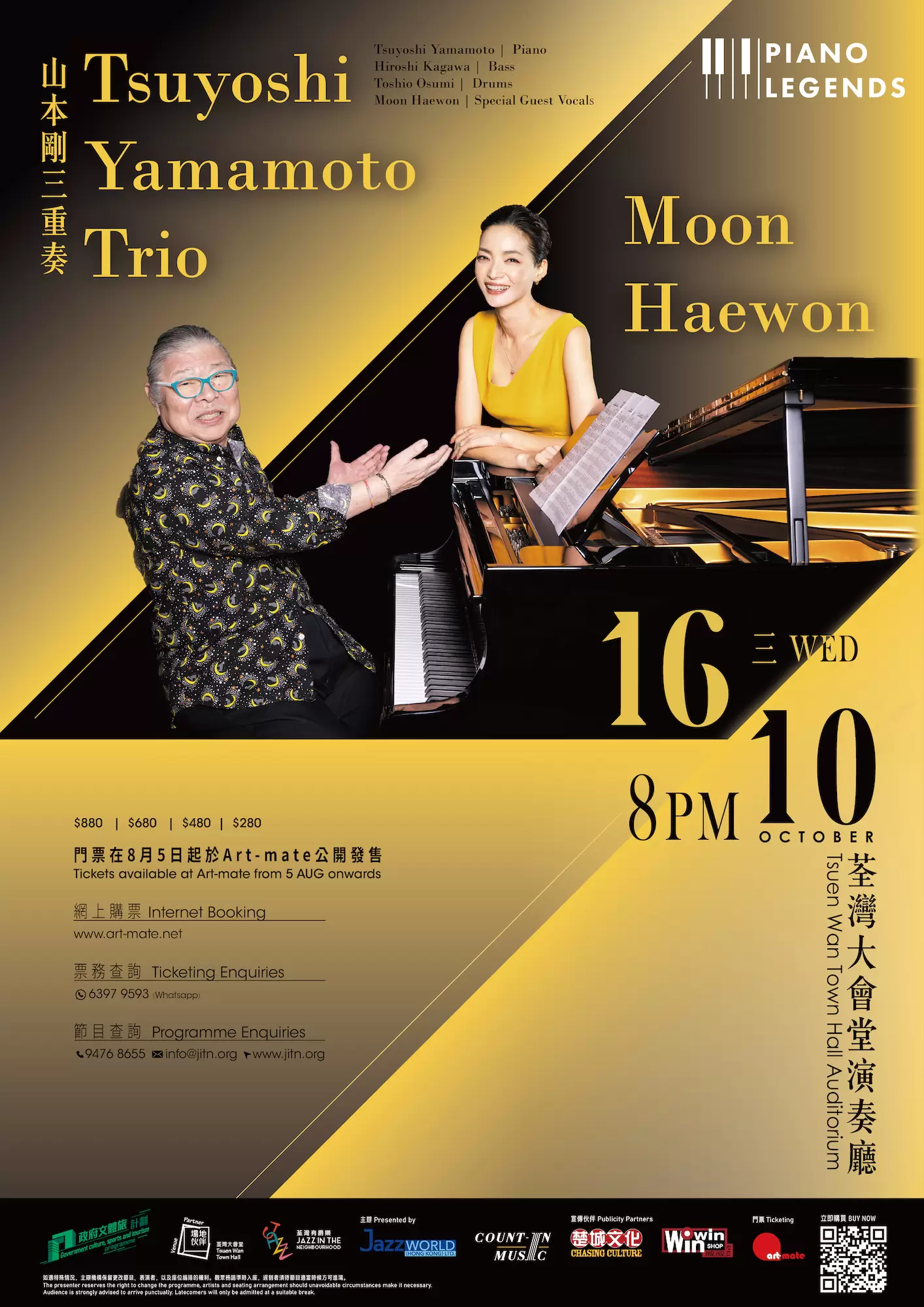 今年10月16日 (星期三) 日本傳奇鋼琴家山本剛將帶領其著名的三重奏重臨香港!,今次「Piano Legends」音樂會更邀請到了韓國爵士天后、前韓國知名爵士樂團Winterplay主音Moon Haewon擔任特別嘉賓。他們剛聯手發行了專輯《Midnight Sun》,在日本的Sound Scan爵士榜上位居第二。為了今次的亞洲區巡演(香港站/廣州站/曼谷站),我們特別推出”Midnight Sun”發燒紀念版Hybrid-SACD! 同時擁有SACD DSD層及MQA-CD層 (24bit/176.4kHz)並使用荷蘭Grimm Audio MasterSync及瑞士Weiss Engineering器材母帶後期處理! SACD於奧地利生產。我們還有神秘計劃 (Holiday Gift from Moon) ,大家千萬不要錯過! This exciting concert coincides with the Master Class event in Hong Kong, making October truly special for music enthusiasts.</vc_column_text]