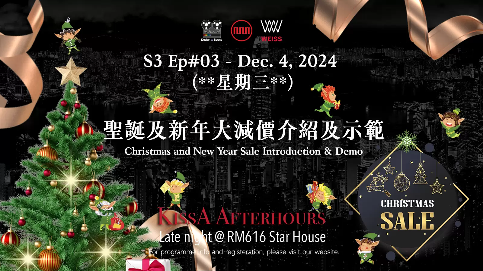 本週特別節目為聖誕及新年大減價預告 – 我們會示範及講解參與朋友有興趣的產品。第三季S3音響活動公開展示最新產品,夢想的完美音響系統,音響世界的不同元素。 唔係淨係講音響器材,仲可以討論唱片製作,音響科技,音響歷史故事以及你想知道的音響問題或題目,我們都盡力回答及交流。無論閣下是音樂或音響發燒友,音響同行,甚至專家們我們都希望由這個Kissa AfterHours系列,跟同好互動吓, 搵吓音響聆聽的愉快。 當然我們還會準備好音樂播放,紅白酒,威士忌,啤酒,咖啡飲料及食品。每次我們還準備高清數位母帶,黑膠漆盤母碟,玻璃CD,總之音響設計及市場的秘密都給你分享。 同事們可以一邊輕鬆跟Kent Poon Happy Hour (加班),另一邊增加音響知識與樂趣。成功參與活動朋友都可以獲得高清原音母帶音頻示範工具專輯 (非賣品)。