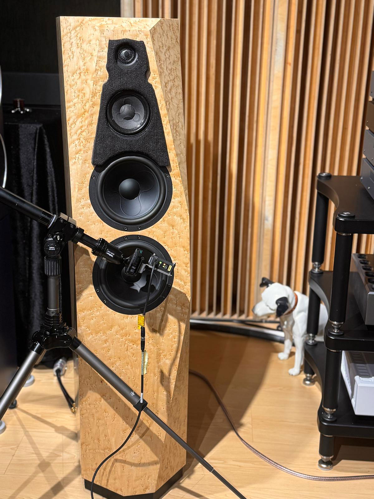 SAM®(Speaker Active Matching)是Devialet的另一項獨門技術。目前已有超過1000款高級音響喇叭的資料庫。SAM®使用雷射光測量每款喇叭低音單元的震動,根據頻率、音量及功率的函數,計算單元振幅失真及扭曲的百分比。當使用具備SAM®資料庫的喇叭時,SAM®能主動應對,帶來兩大優點:第一,當重播音壓過大或音頻導致單元振幅失真過量時,SAM®會降低電流輸出以保護喇叭;第二,SAM®能更精準地控制電流,使喇叭低音下潛更深,失真更低同時修補低音與高音單元之間的重播時間差距。這項技術顯著提升了音響重播效果。今天下午,我們剛與法國Devialet工程師共同製作了Avalon Acoustics Precision Monitor PM2.2的SAM®資料庫,以下照片可供參考。