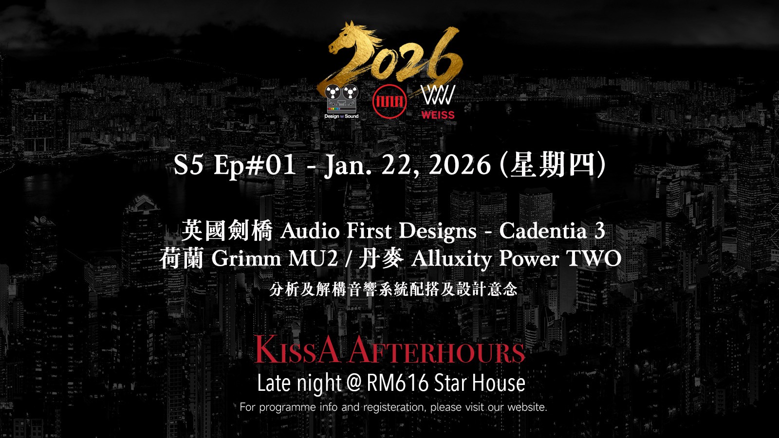 2026開始,重新我們音響交流! 今個星期四,晚上七時Open House公開展示最新產品以及音響世界的不同元素。 唔係淨係講音響器材, 仲可以討論唱片製作,音響科技,音響歷史故事以及你想知道的音響問題或題目,我們都盡力回答及交流。無論閣下是音樂或音響發燒友,音響同行,甚至專家們我們都希望由這個AfterHours系列,跟同好互動吓, 搵吓音響聆聽的愉快。 當然我們還會準備好音樂播放, 飲料及食品。 同事們可以一邊輕鬆吓Happy Hour (加班),另一邊增加音響知識與樂趣。 歡迎註冊參與。 星期四晚見!